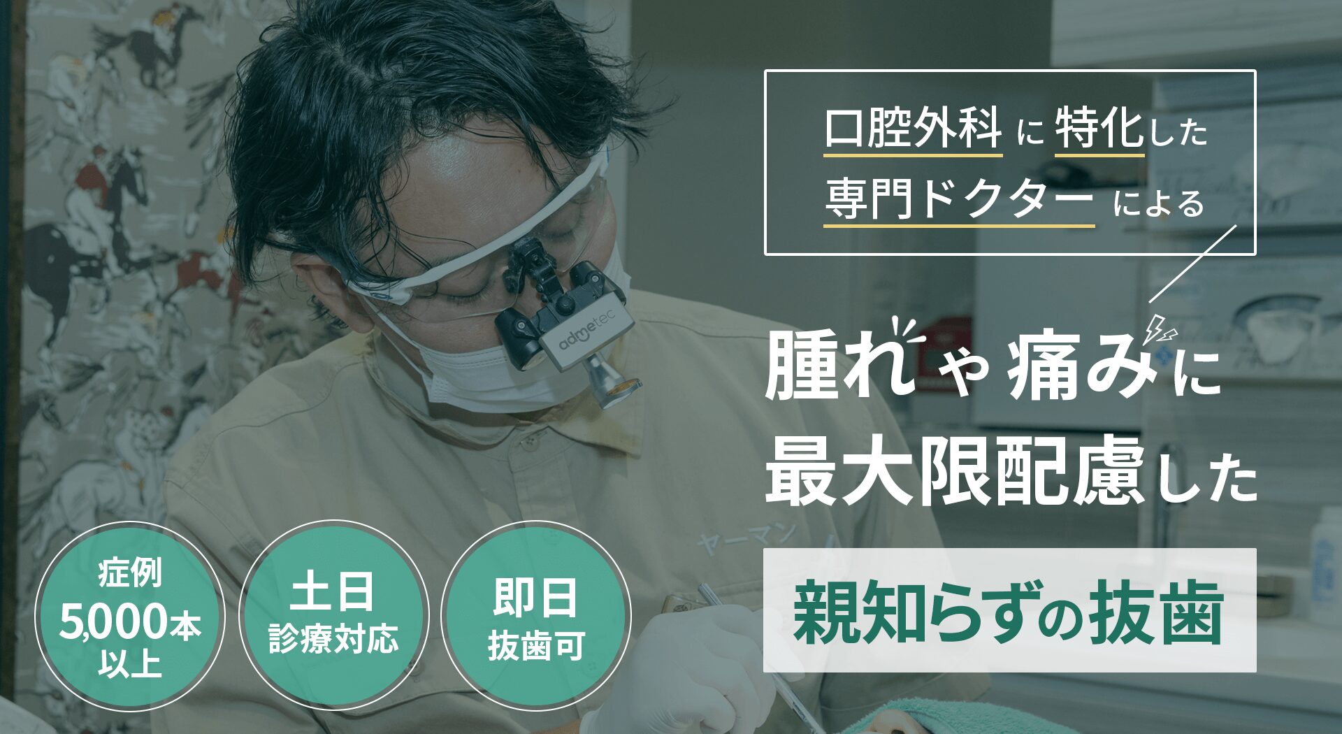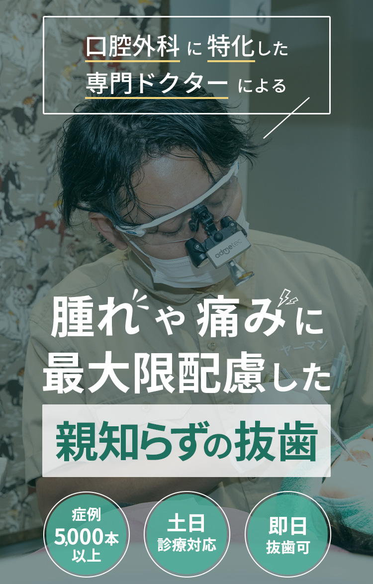 当院では、口腔外科に特化した専門ドクターが親知らずの状態を丁寧に診断し、必要に応じて安全で確実な治療を行います。患者さま一人ひとりの状況に合わせた最適な治療法をご提案し、抜歯の際も痛みに最大限配慮しながら進めています。